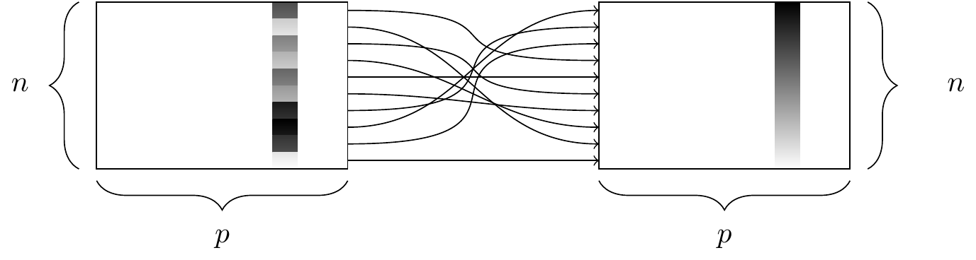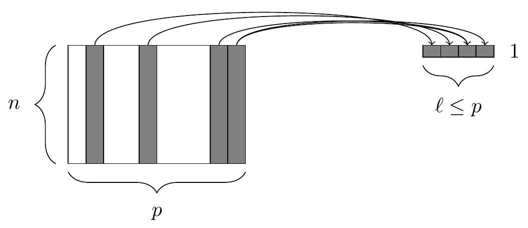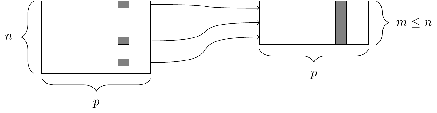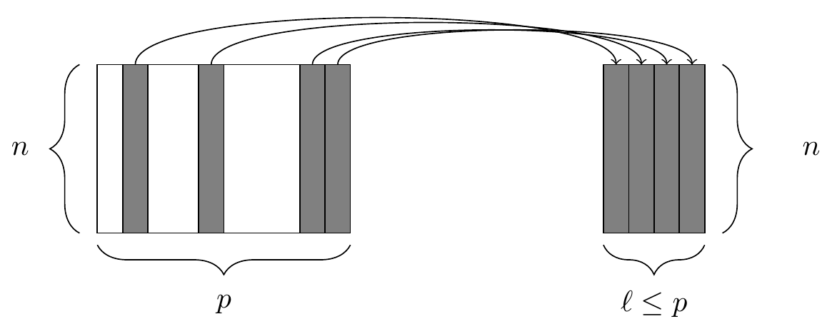 select()The select() function. At left, a data frame, from which we retrieve only a few of the columns. At right, the resulting data frame after selecting those columns.