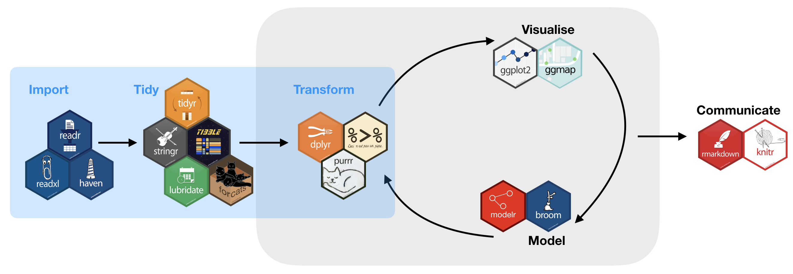 Some packages in the tidyverse.