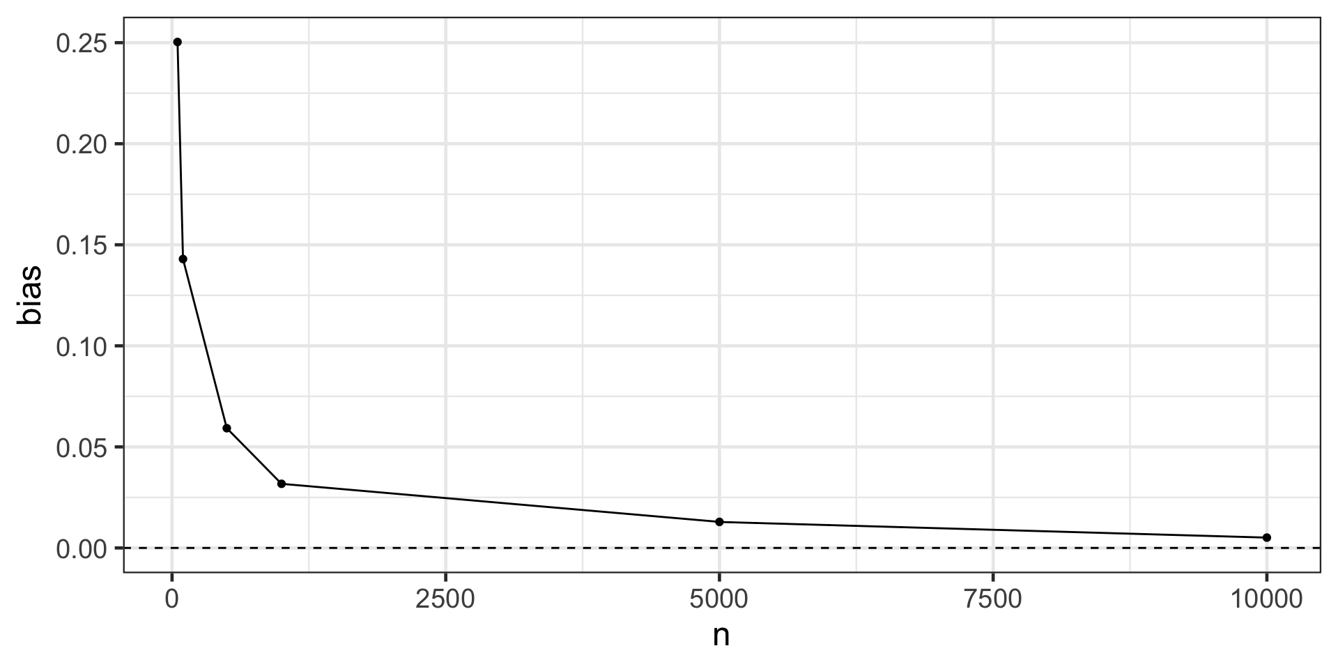 We know that not accounting for confounders or blocking open backdoor paths can bias our causal estimates, but it turns out that even after accounting for all confounders, we may still get a biased estimate with finite samples. Many of the properties we tout in statistics rely on large samples—how “large” is defined can be opaque. Let’s look at a quick simulation. Here, we have an exposure/treatment, \(X\), an outcome, \(Y\), and one confounder, \(Z\). We will simulate \(Y\), which is only dependent on \(Z\) (so the true treatment effect is 0), and \(X\), which also depends on \(Z\).